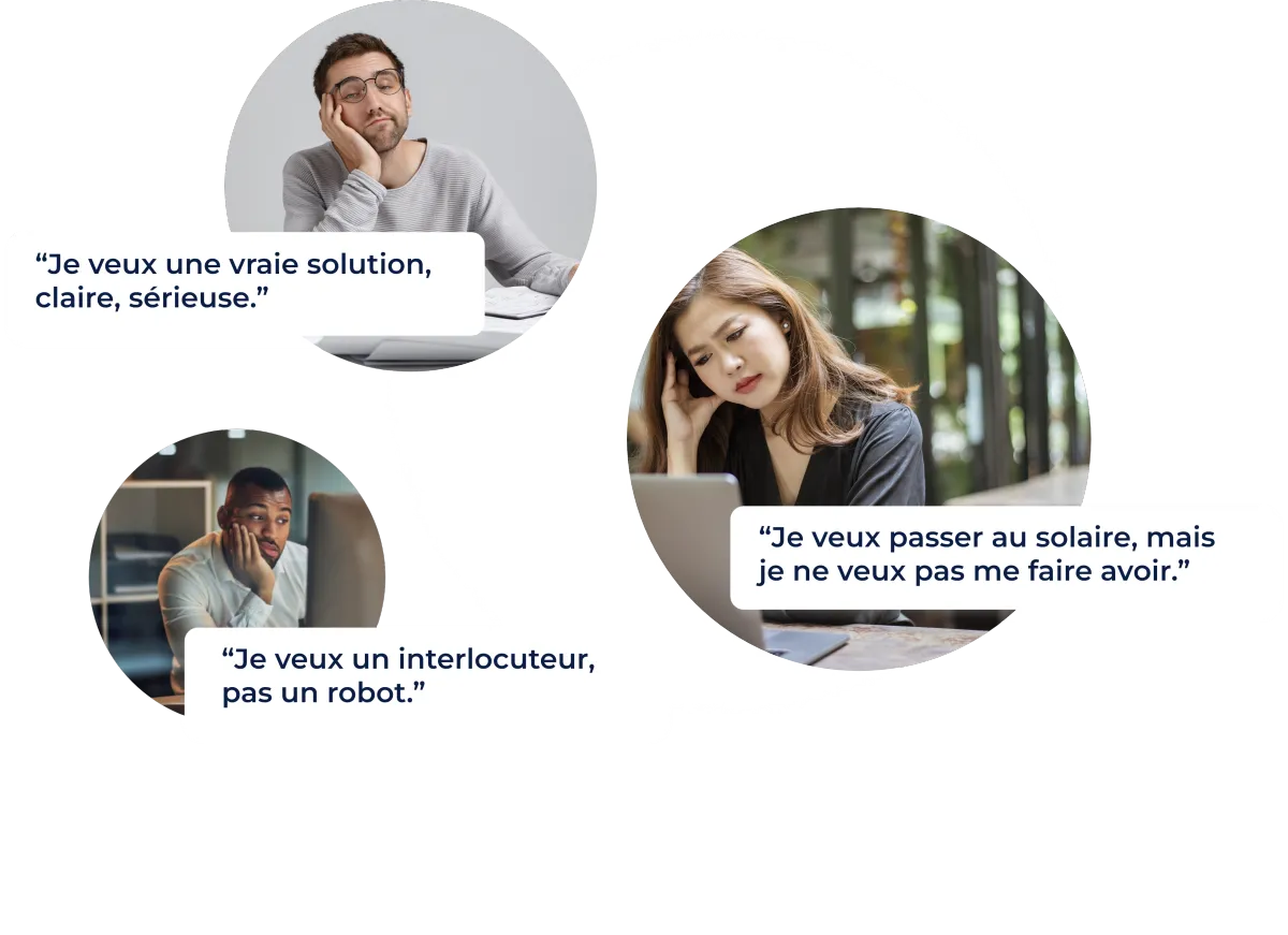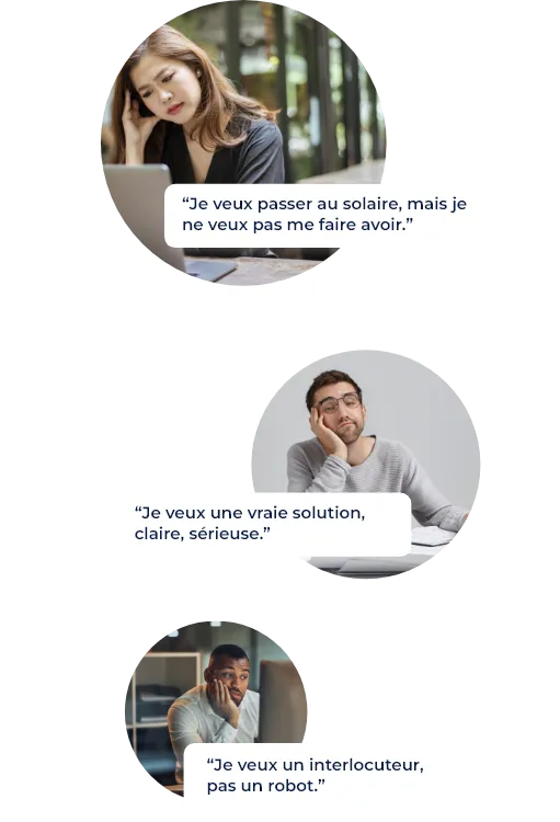 En 5 minutes d’échange, on analyse votre situation : Toiture, conso, budget.